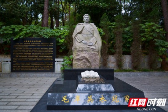 #p#分页标题#e#棉花山上除了楊開慧與母親的墓地,還有她的兩個兒子陪伴著她。在陵園台階的兩側,分別是毛岸英的衣冠塚和毛岸青夫婦的墓地。毛岸英在朝鮮犧牲后就安葬在朝鮮,前些年經批准在這裡修建了他的衣冠塚,墓塚后面立有毛岸英的花崗岩雕像,黑色花崗岩墓頂放著一本漢白玉雕成的書。